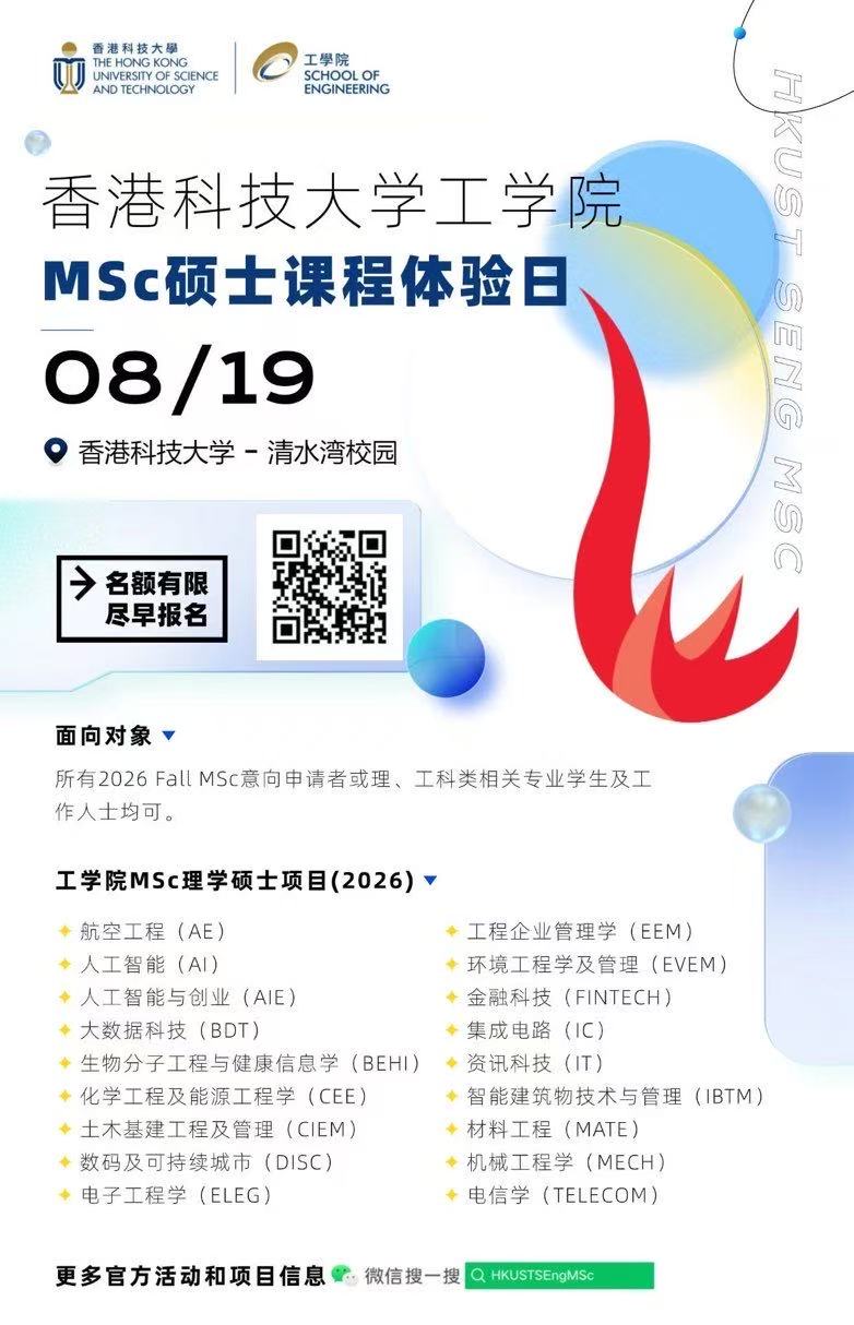 香港科技大学校园体验日 ----工学院理学硕士MSc课程专场